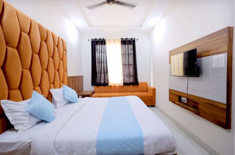 Spacious and bright, our Deluxe Room offers AC, free WiFi, and a cozy seating area for your comfort.